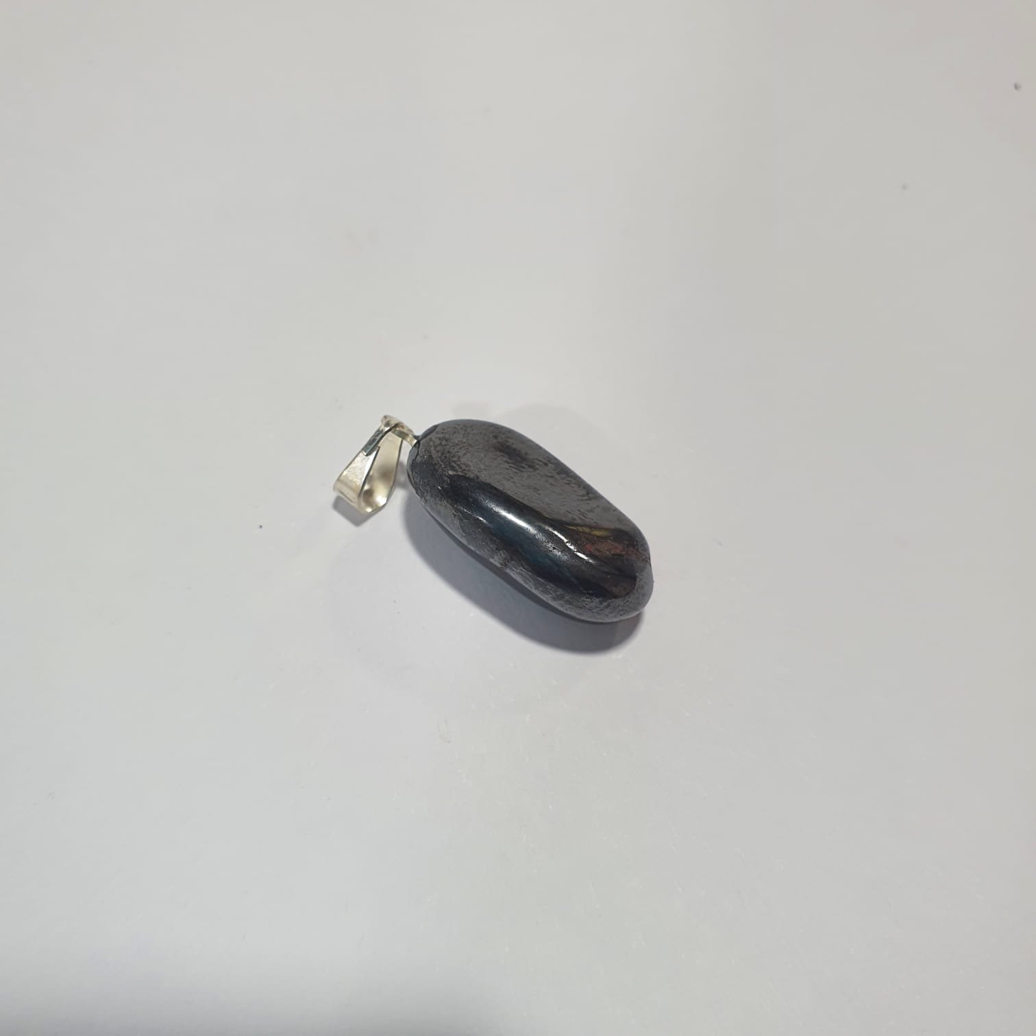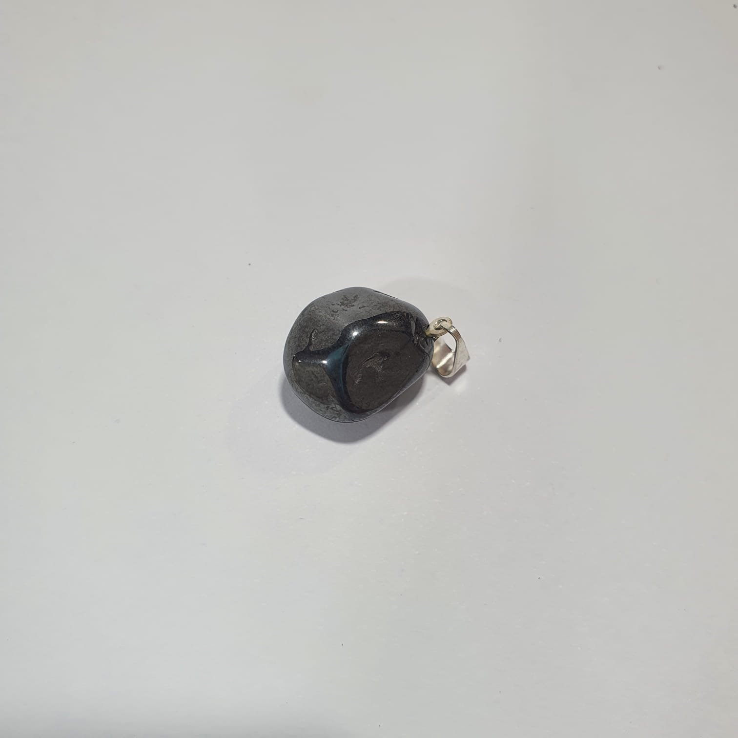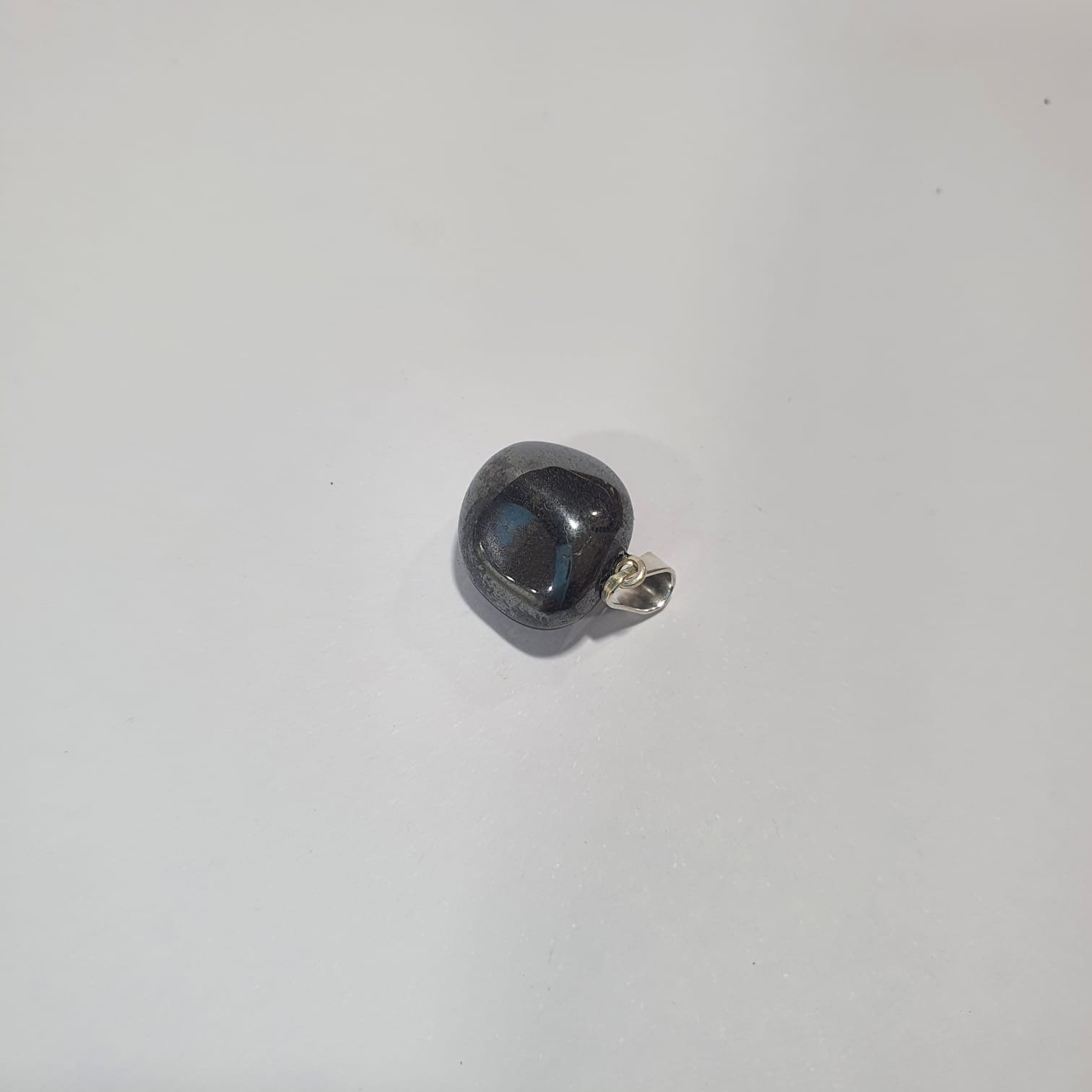 Obsidian is a natural volcanic glass, formed when lava rich in silica cools rapidly, preventing crystallization. This gives the material its characteristic vitreous luster and dark tones. In this pendant version, the stones are finished through a tumbling process, where rough fragments are placed in rotary barrels with abrasives and water. This technique smooths the surfaces, rounds the edges, and highlights the obsidian’s natural brilliance.