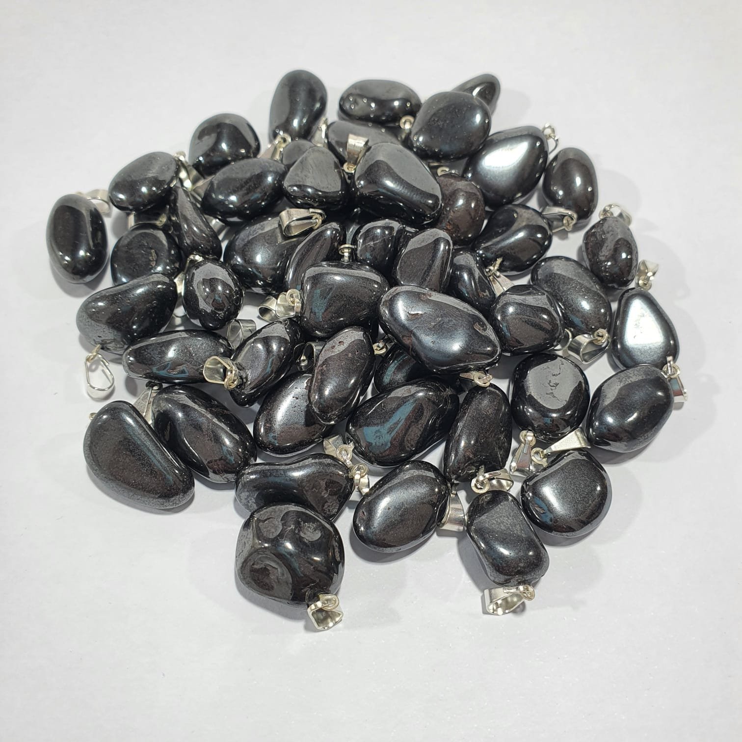 Tumbled Obsidian pendants with a polished, smooth finish that enhances their natural deep black sheen. Each piece is unique in color and shape, offering a refined and timeless look. Sold in wholesale packs of 25 units, perfect for jewelry, decoration, and resale.