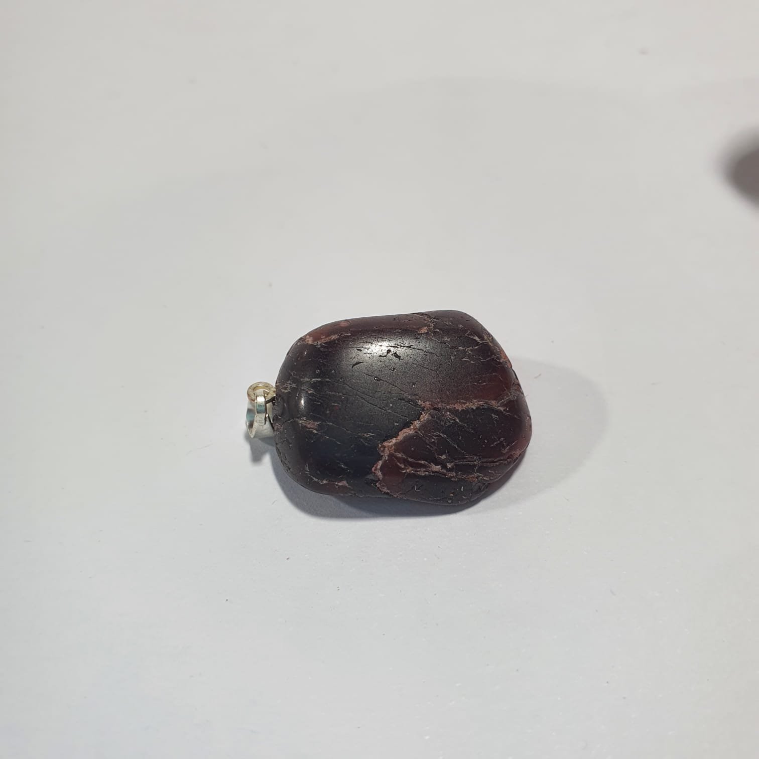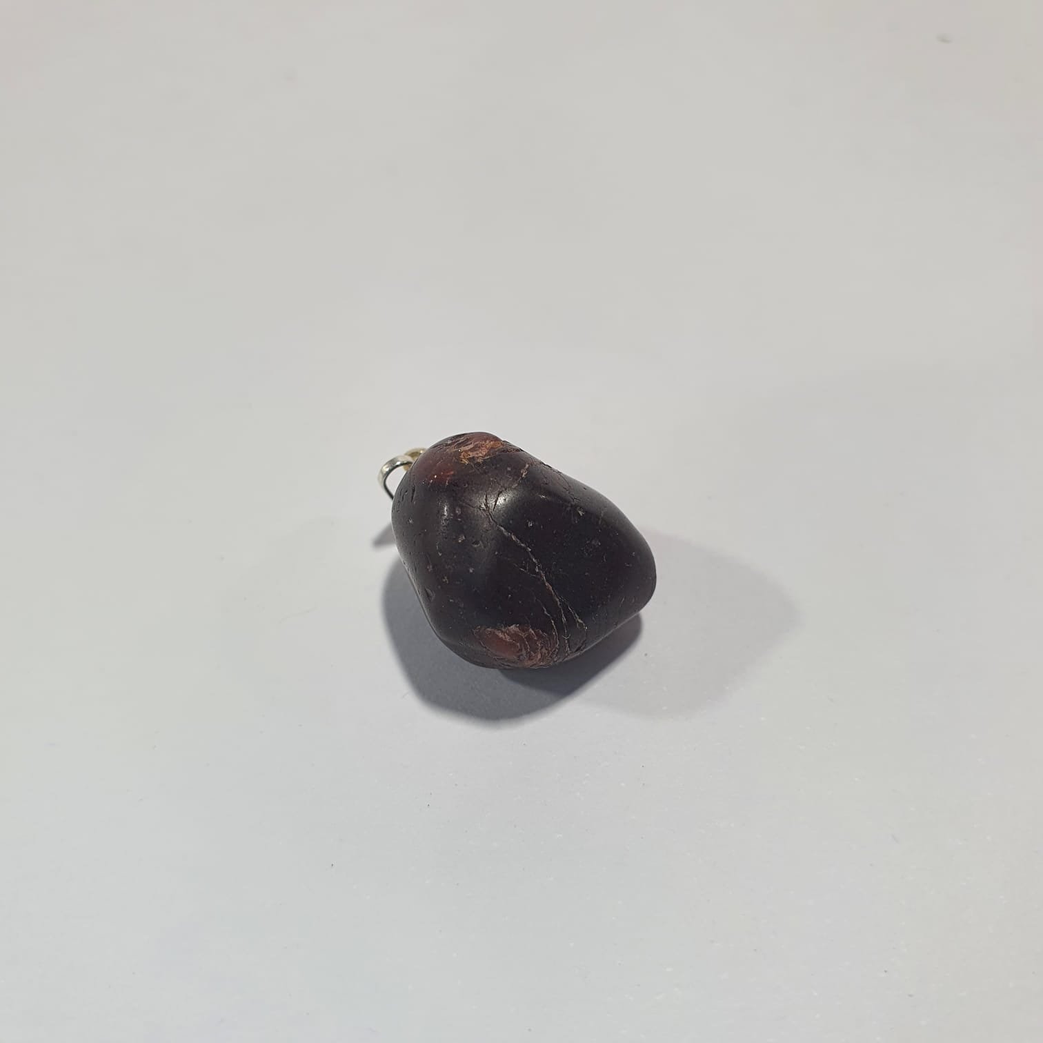 Rhodolite Garnet is a natural variety of the garnet group, composed mainly of aluminum silicate with magnesium and iron. Its vivid reddish-purple coloration forms during metamorphic processes under high pressure and temperature. In this pendant version, the stones are tumbled, a mechanical polishing technique where rough minerals are rotated in barrels with abrasives and water. This process smooths the surfaces, rounds the edges, and enhances the luster, revealing the gem’s natural brilliance and depth of color.