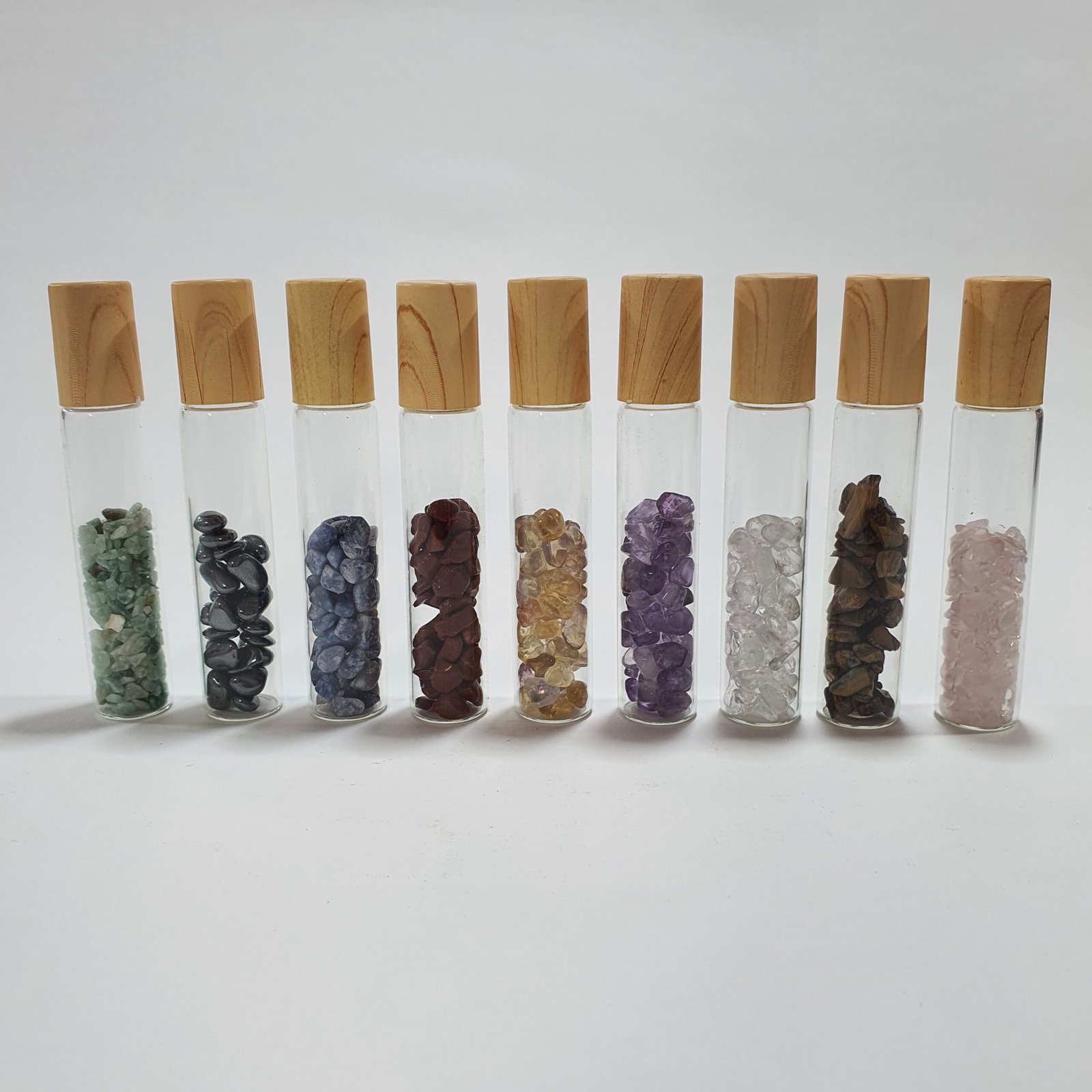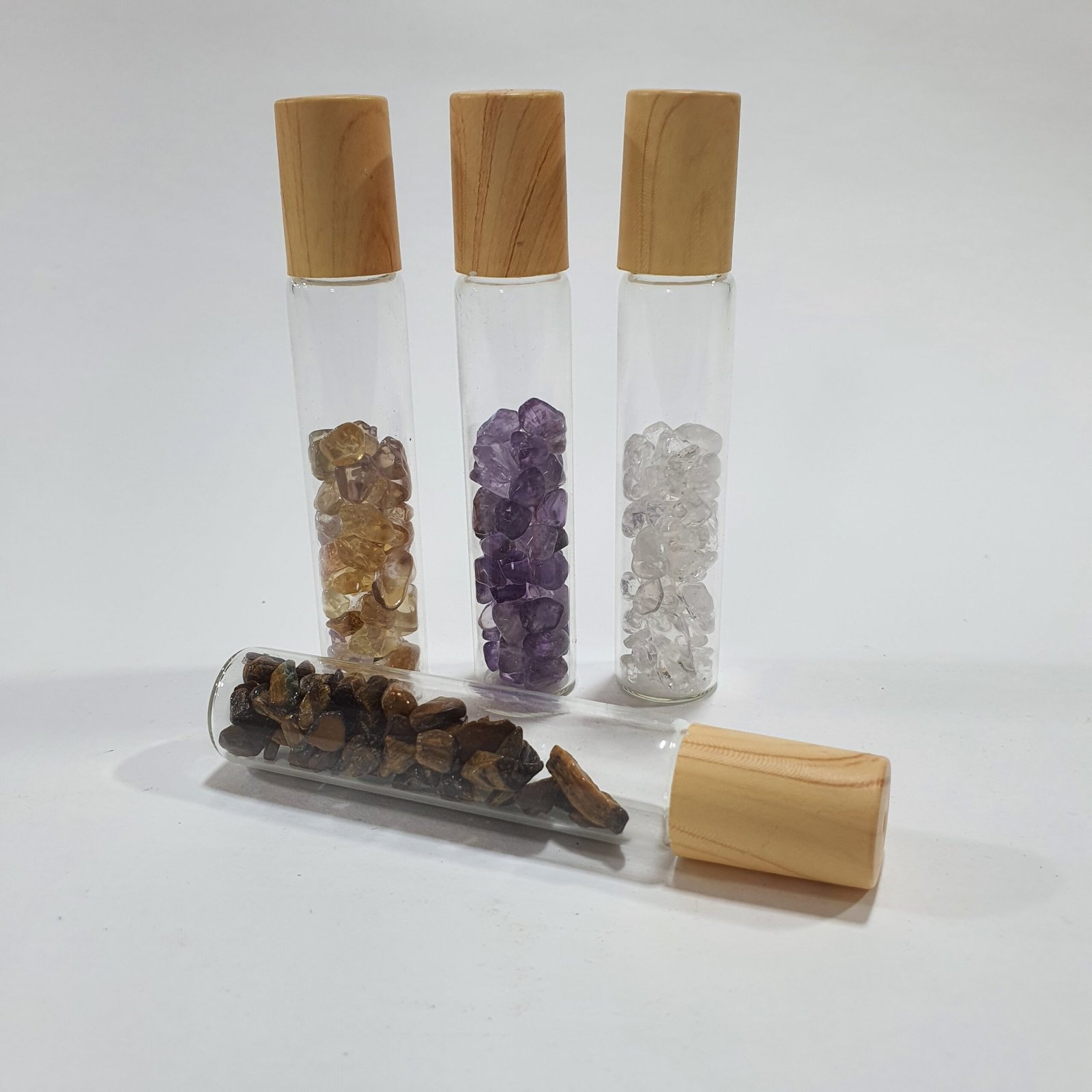 The Mine Oil Roller Bottle – Natural Gemstone is a practical and elegant glass bottle, ideal for storing essential oils or favorite fragrances. Each bottle features a natural or polished stone at the tip, which can be customized according to the customer’s request, making each piece unique and personalized.