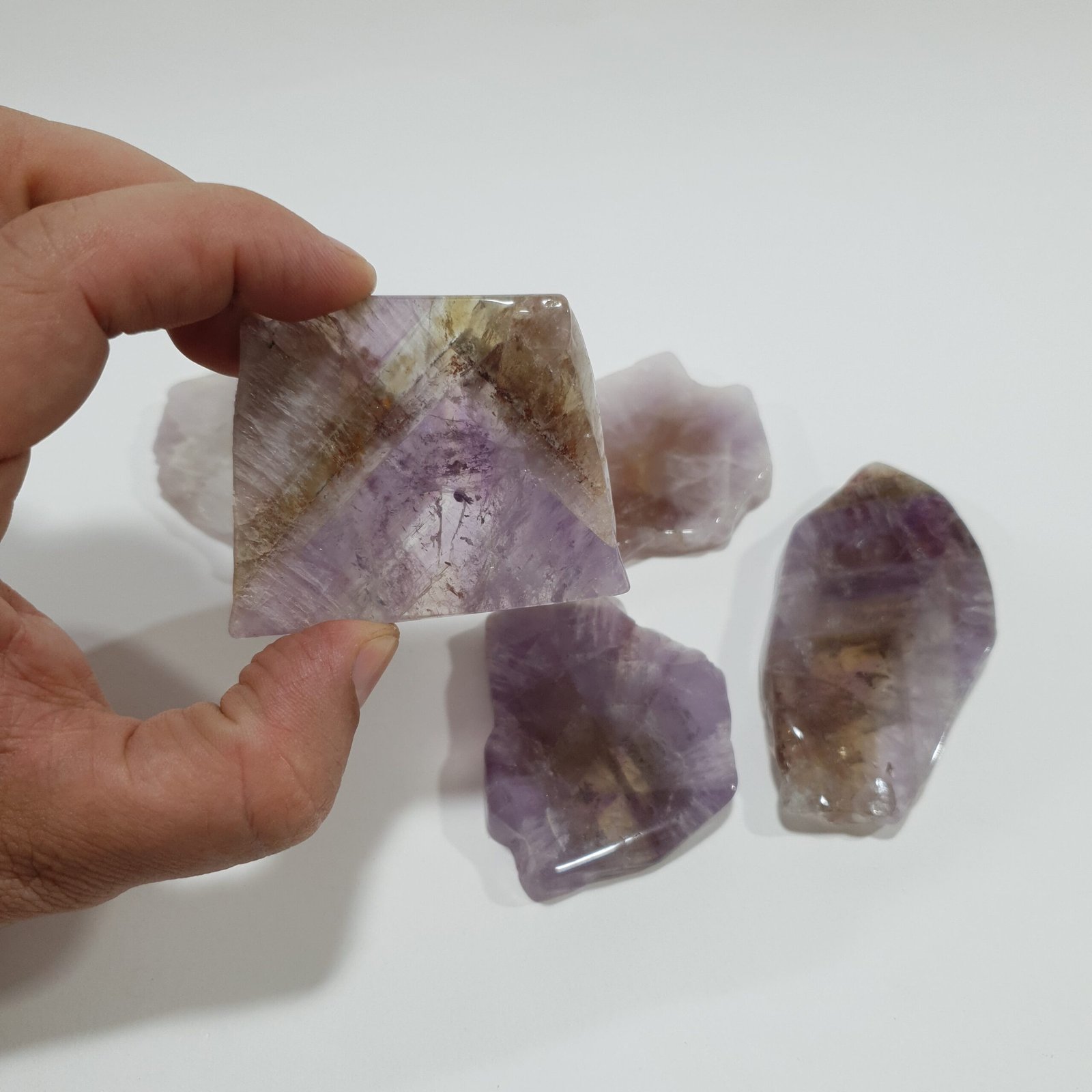 • Polished flat slice of Amethyst Super Seven (3–10 cm)