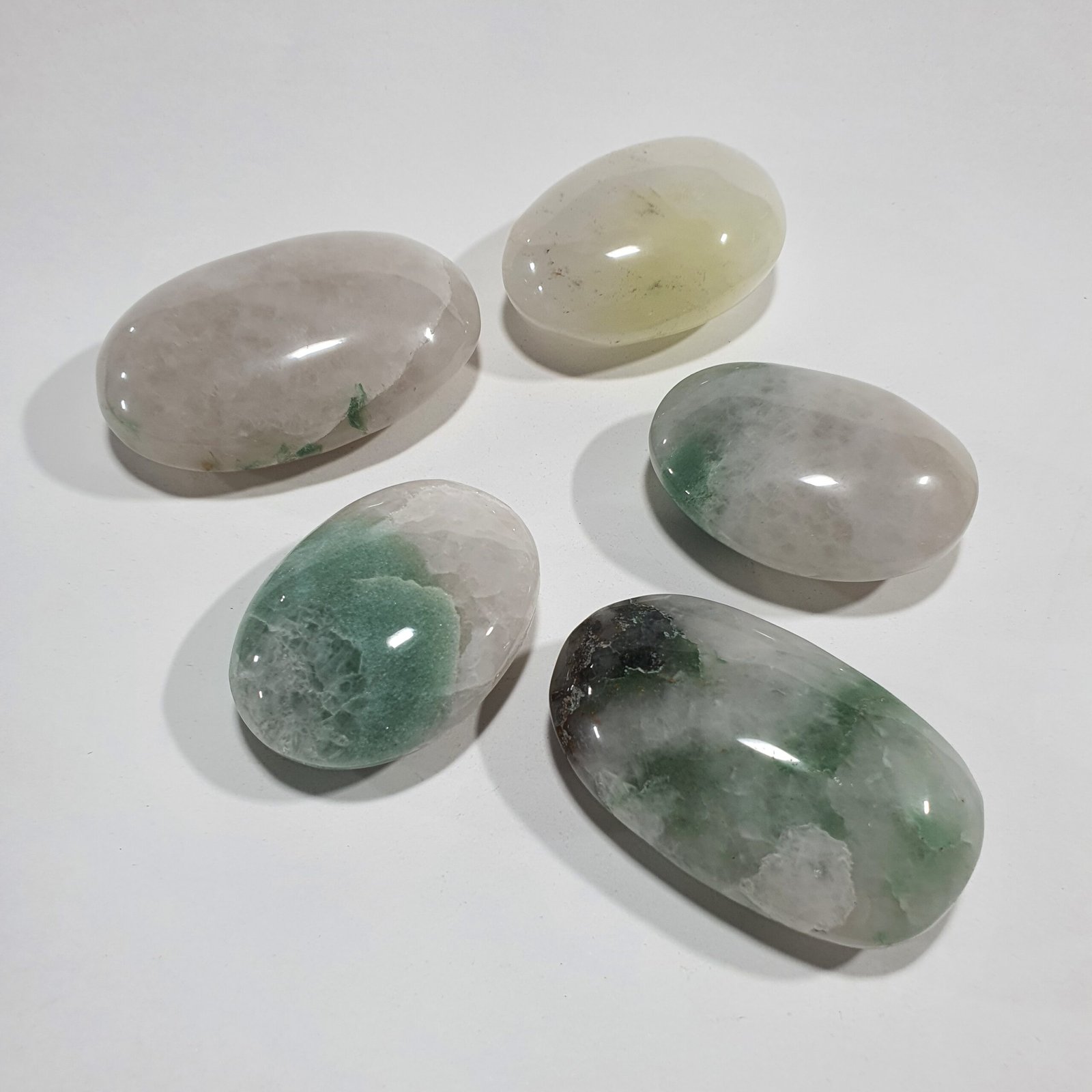 The Bicolor Green Quartz Polished – Massaging Gemstone Soap is a beautifully hand-polished gemstone shaped like a soap bar, featuring natural variations of green and translucent tones. Each piece highlights the unique dual coloration of Green Quartz, making it a refined and elegant option for decoration, collection, craftwork, or resale. Sold by kilogram, it combines aesthetic appeal with natural authenticity.