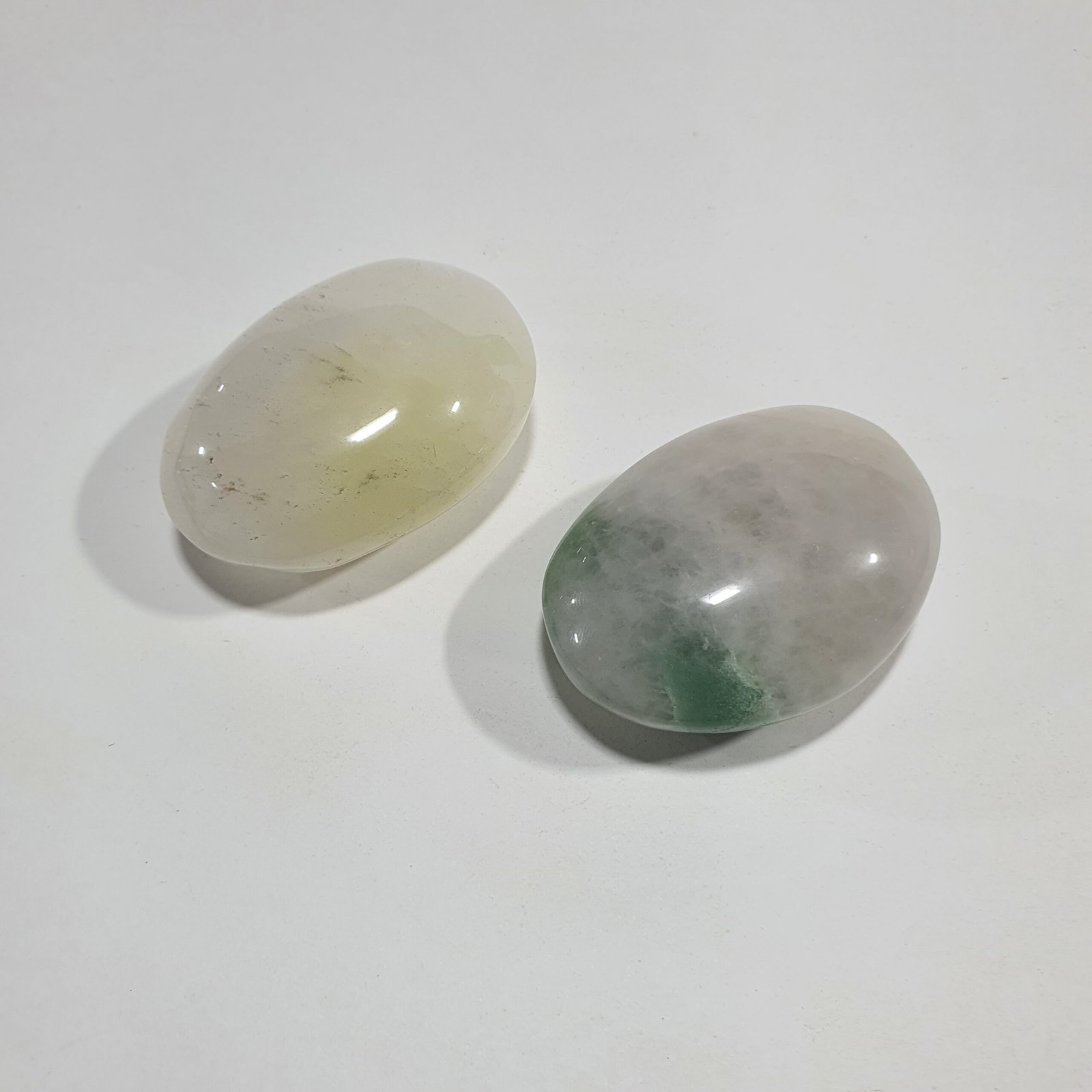 Bicolor Green Quartz forms in silica-rich environments through the slow cooling of hydrothermal fluids within cavities and veins of igneous rocks. The presence of iron and other trace minerals creates its characteristic green hues and subtle color transitions. The polishing process enhances its natural luster and clarity, revealing the gemstone’s layered beauty.