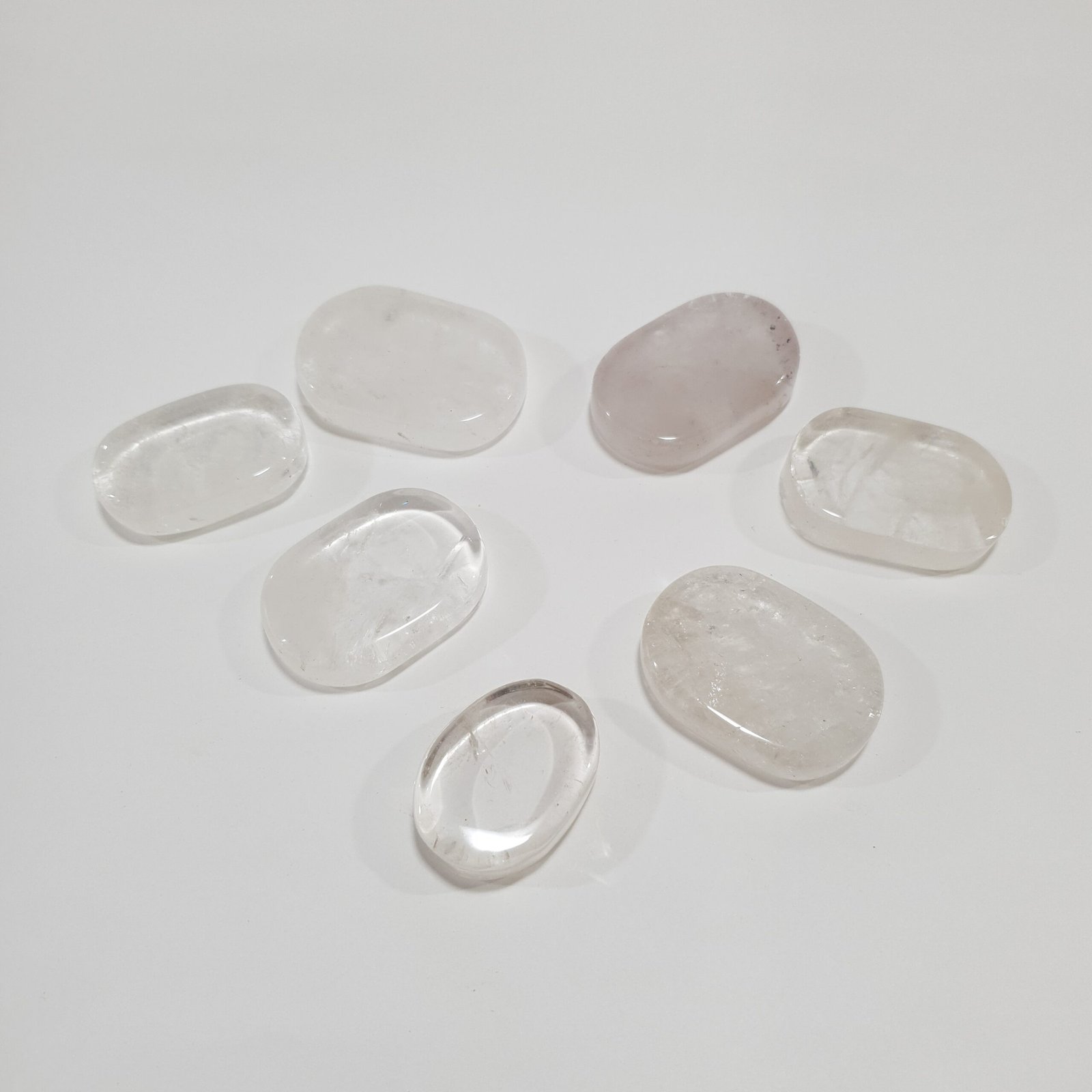 The Clear Quartz Palm Stone Massager features natural Clear Quartz polished into a smooth, ergonomic shape that fits comfortably in the palm. Its transparent, crystalline clarity makes it ideal for hand massage, decoration, and gemstone collections.