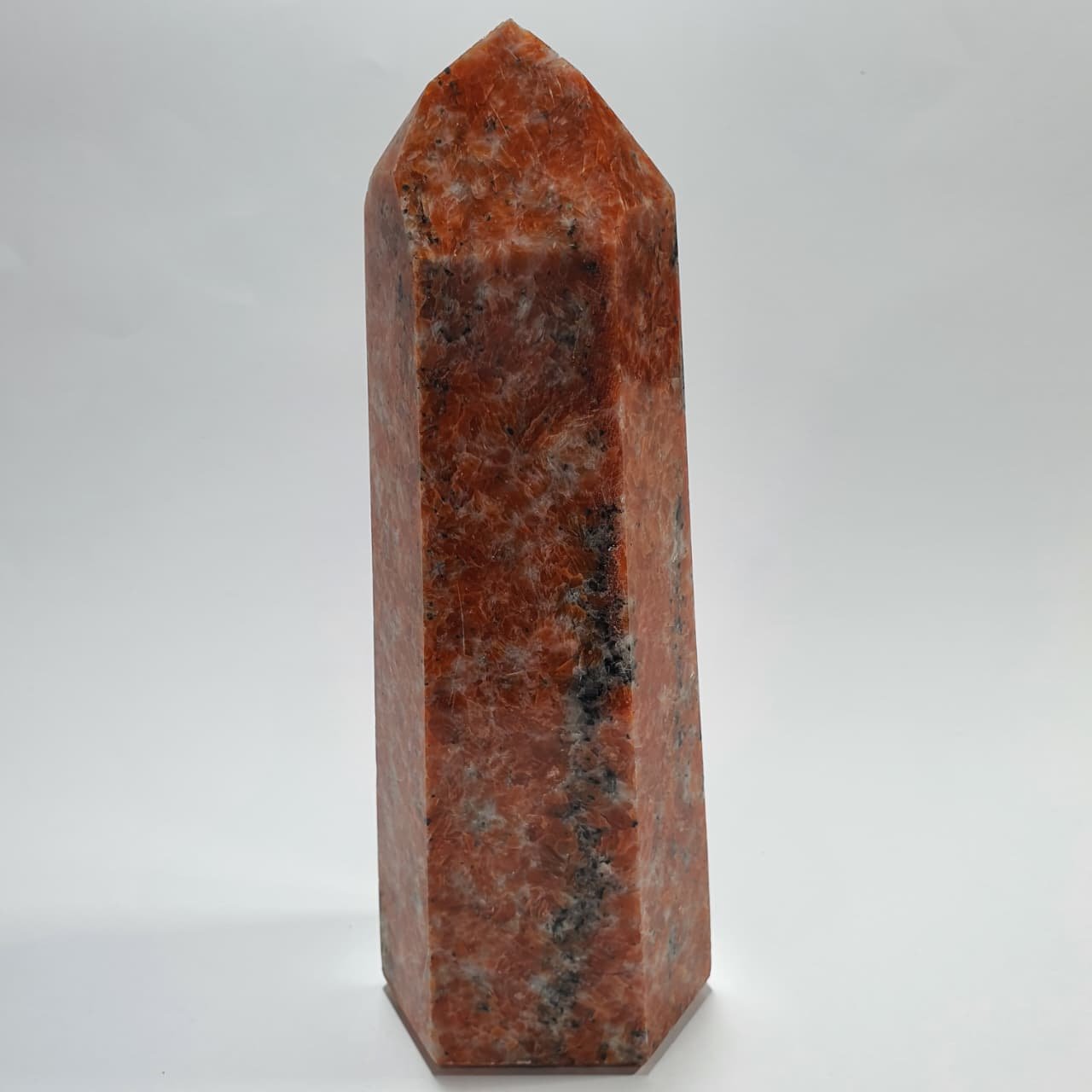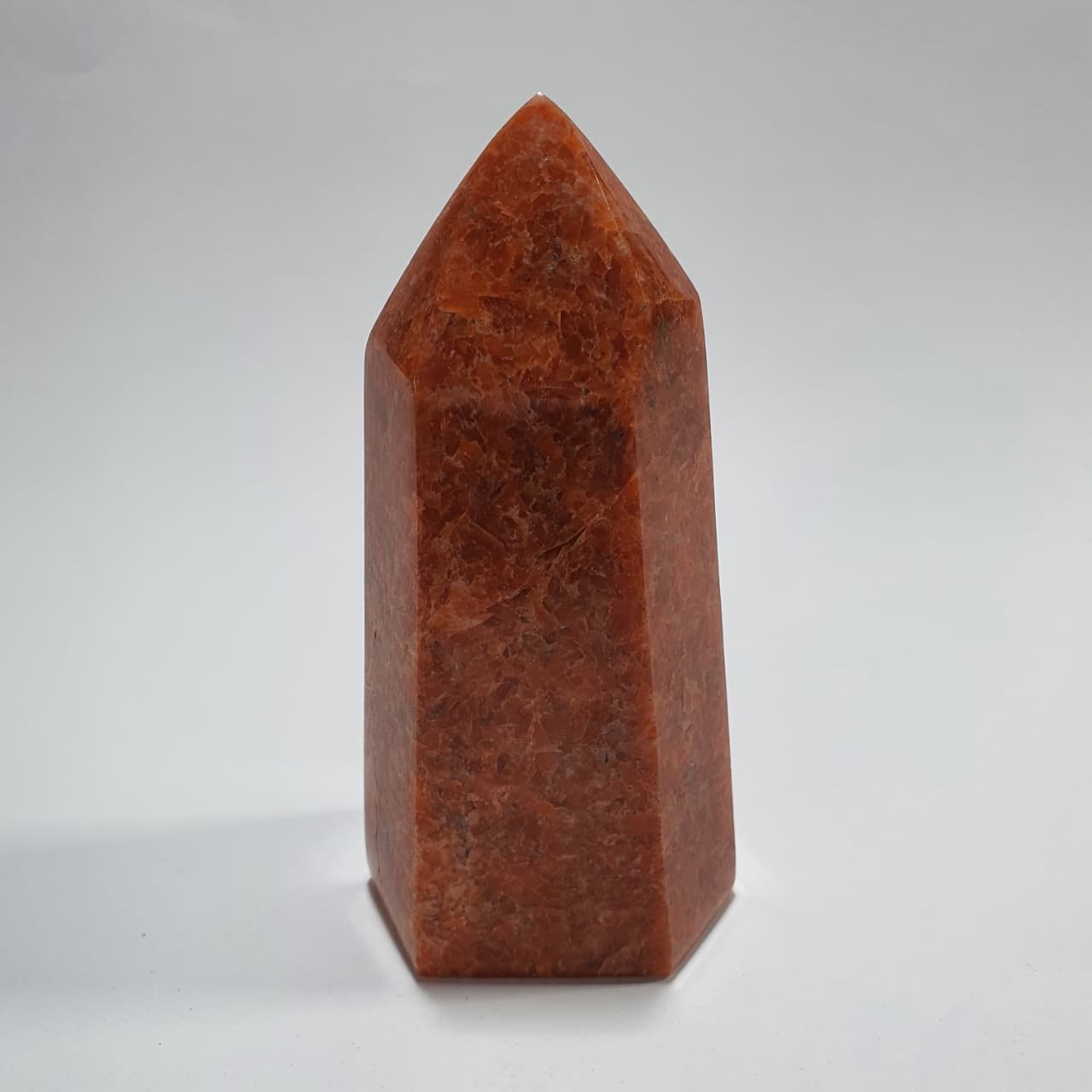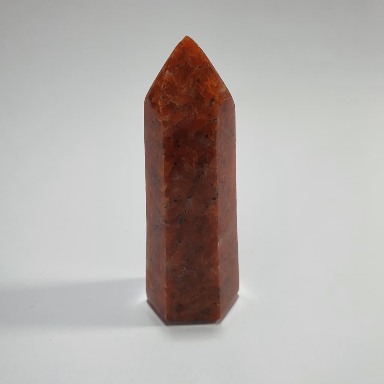 Orange Calcite is a calcium carbonate mineral (CaCO₃) that forms in sedimentary environments, typically through the precipitation of calcium-rich waters in limestone and marble deposits. The orange coloration is due to natural inclusions of iron or other trace elements. The polished points are shaped from raw material and carefully cut, ground, and polished to enhance the color saturation and natural luster of the stone.