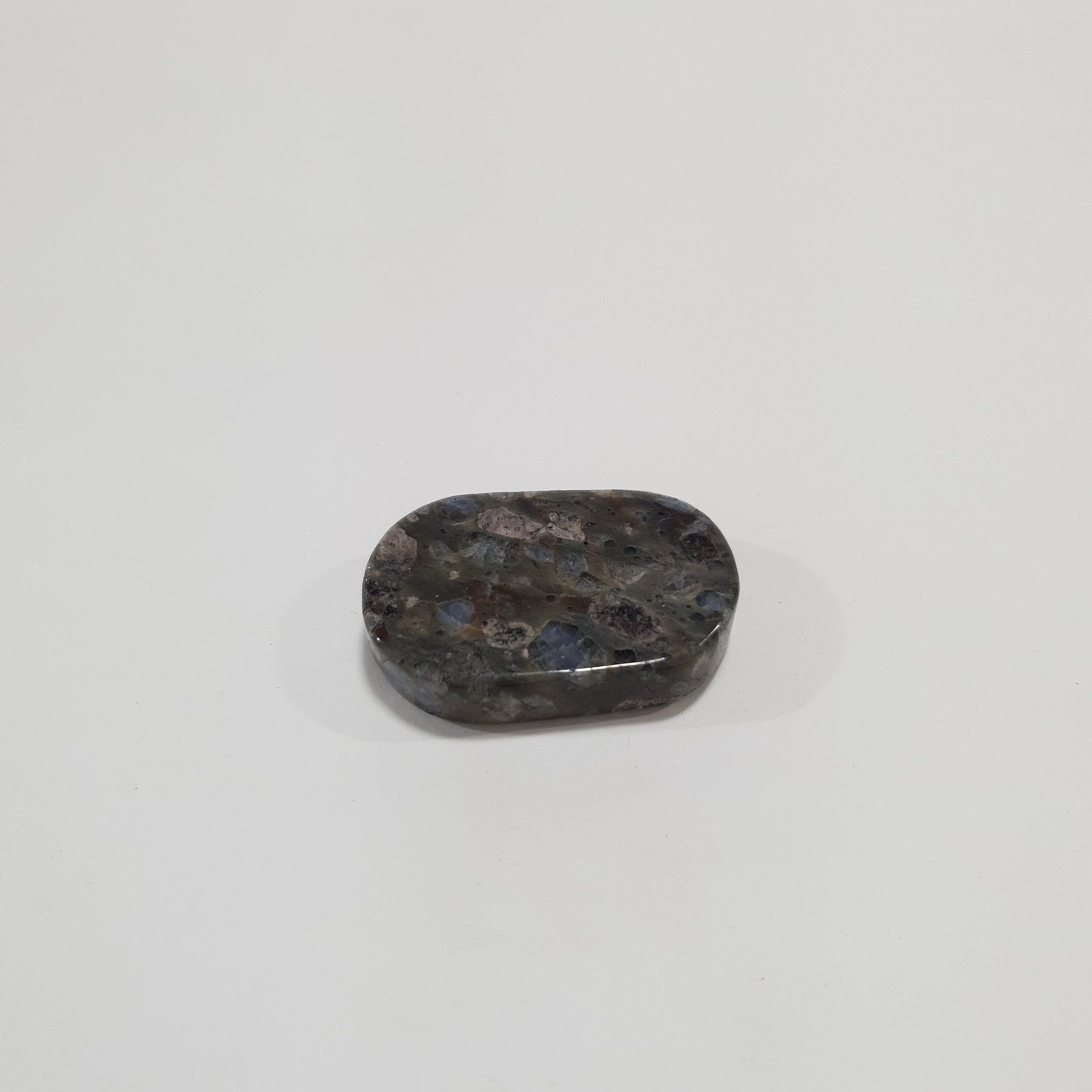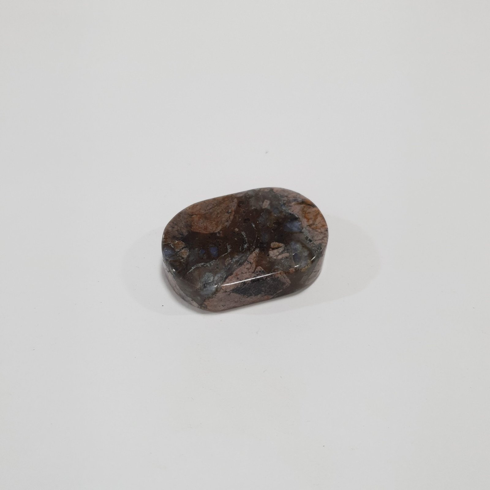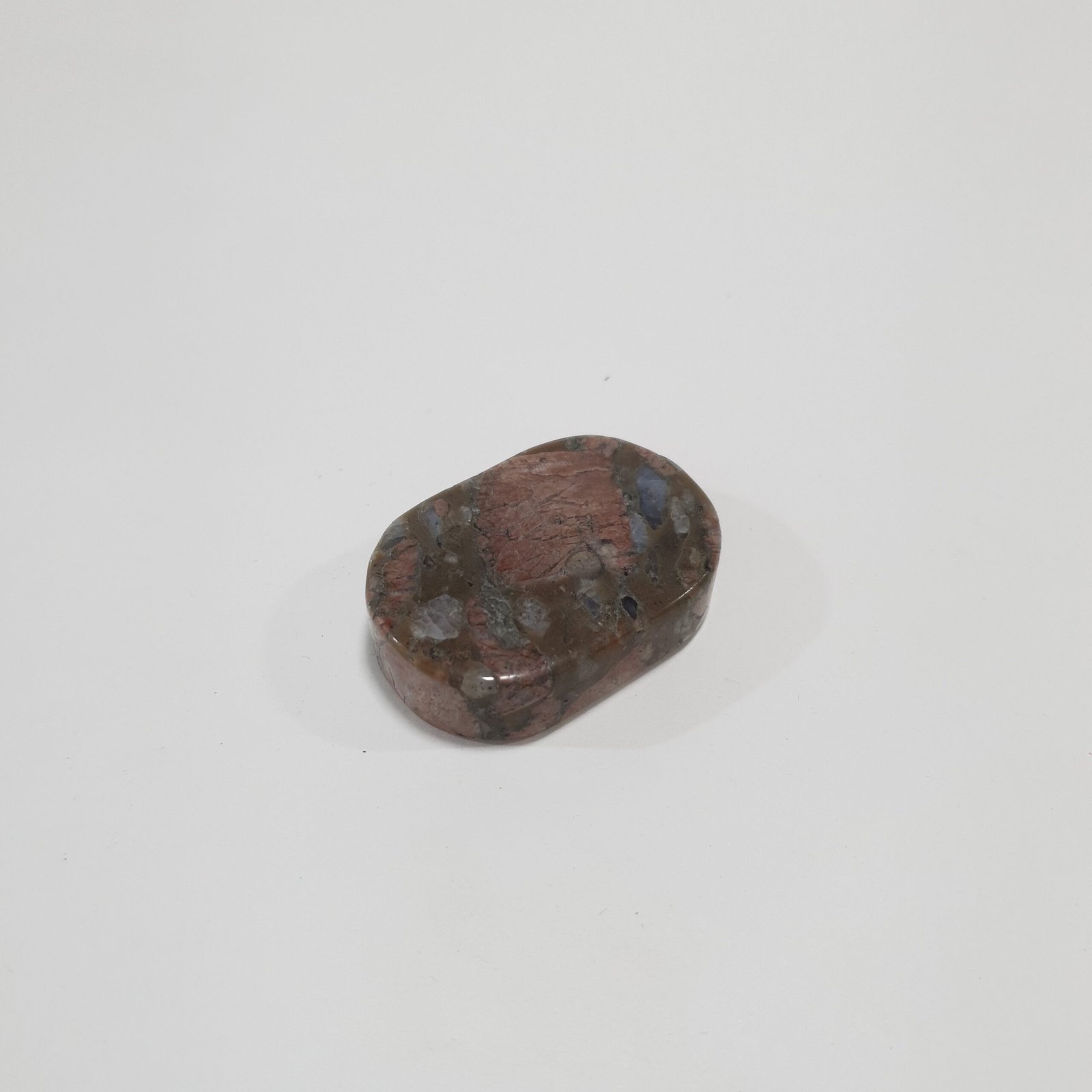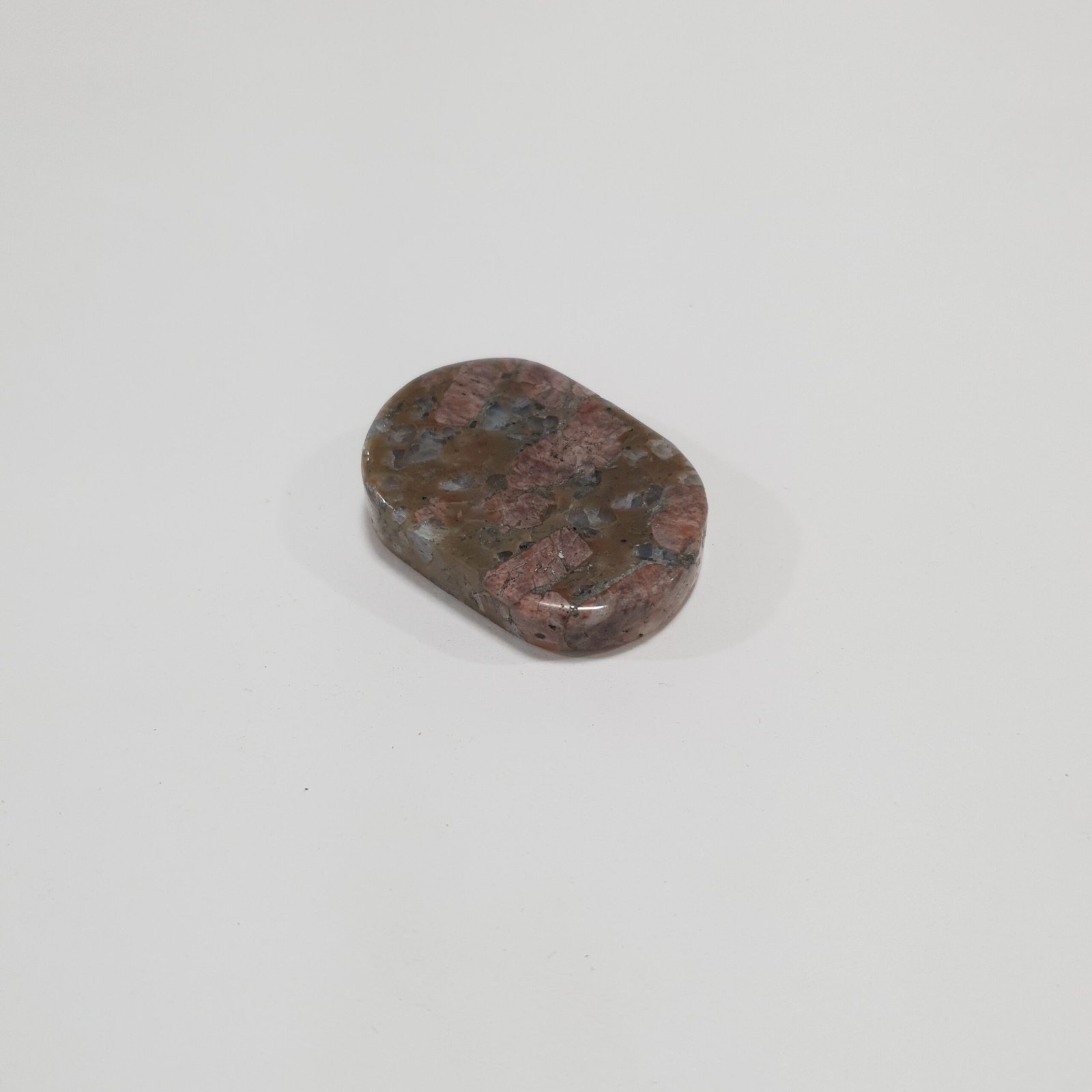 The Rhyolite Palm Stone Massager features natural Rhyolite polished into a smooth, ergonomic shape that fits comfortably in the palm. Its earthy tones and intricate patterns make it ideal for hand massage, decoration, and gemstone collections.