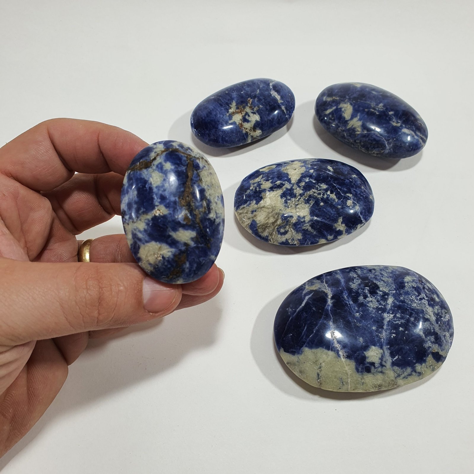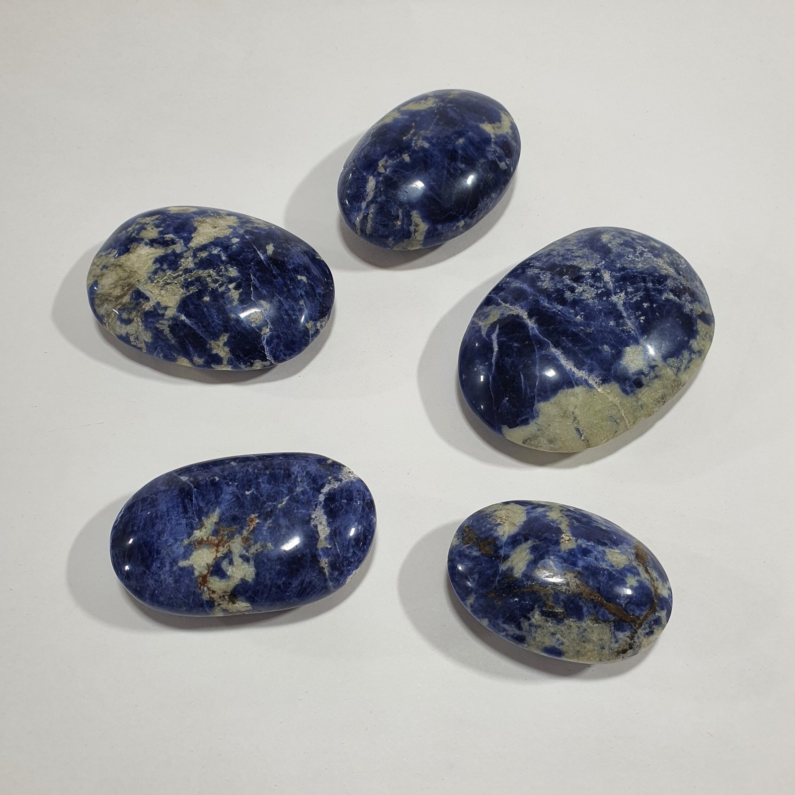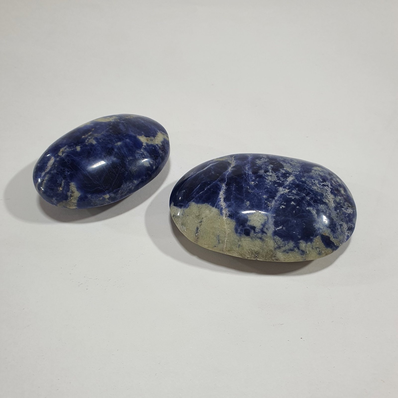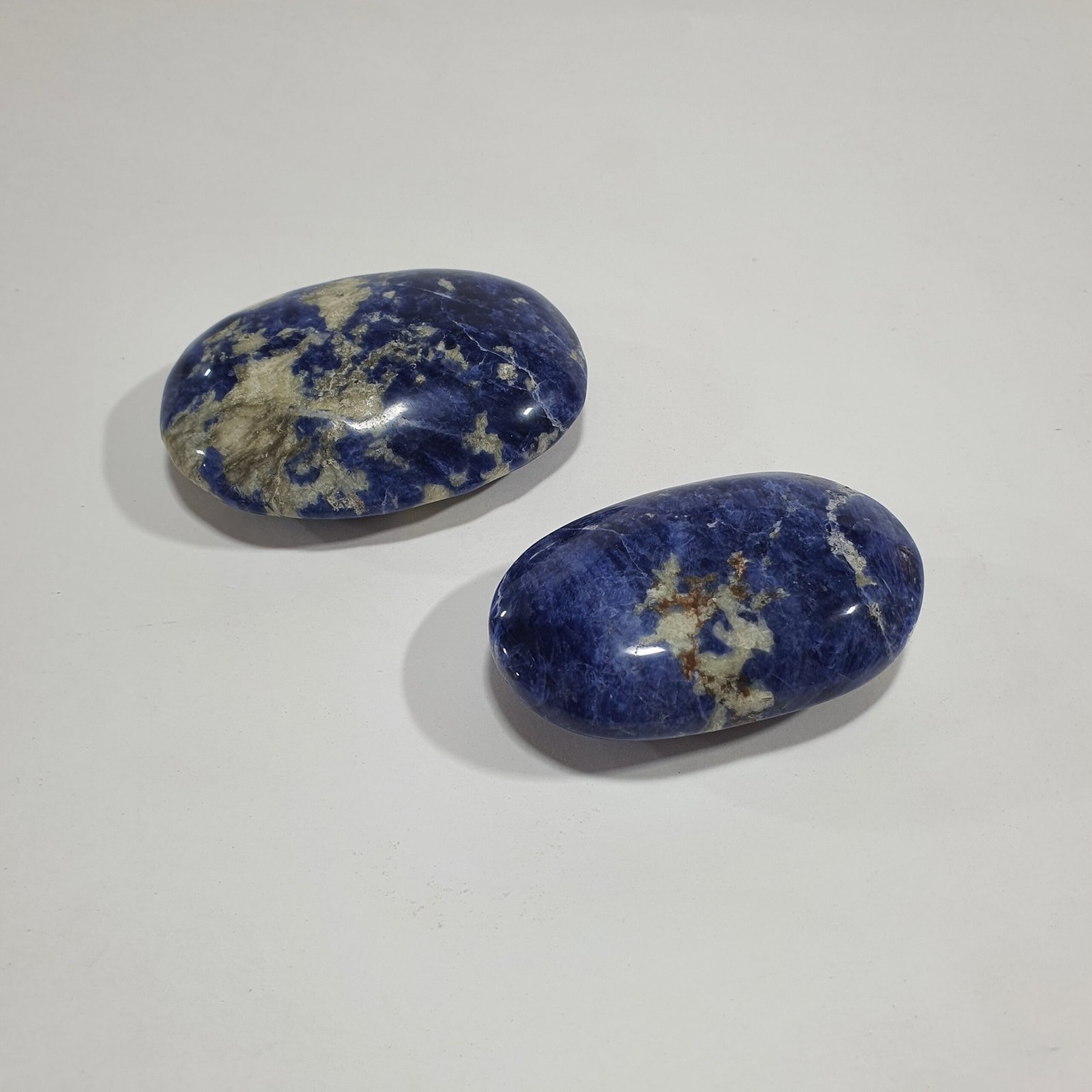 Sodalite is a natural silicate mineral typically formed in igneous rocks such as nepheline syenites and phonolites. It develops when sodium-rich magma crystallizes slowly, allowing the mineral to form in vibrant shades of blue. The polishing process enhances its surface, bringing out the contrast between the dark blue matrix and its characteristic white streaks.