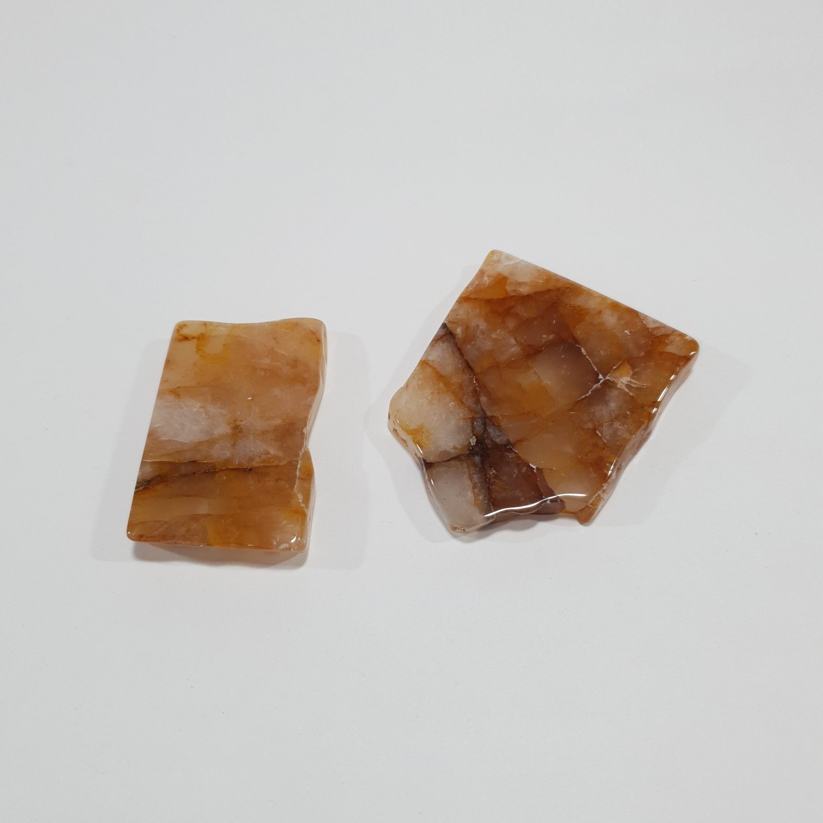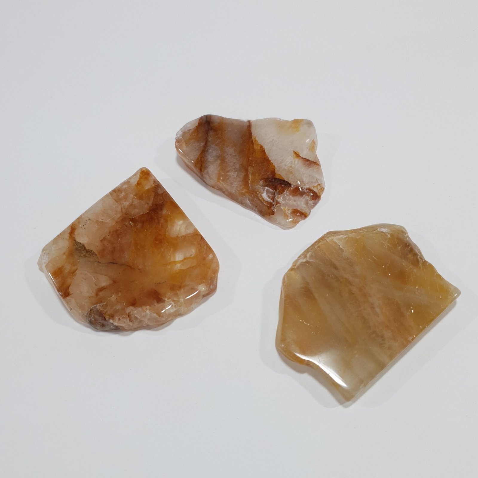 • Polished flat slice of Yellow Hematoid Quartz (3–10 cm)