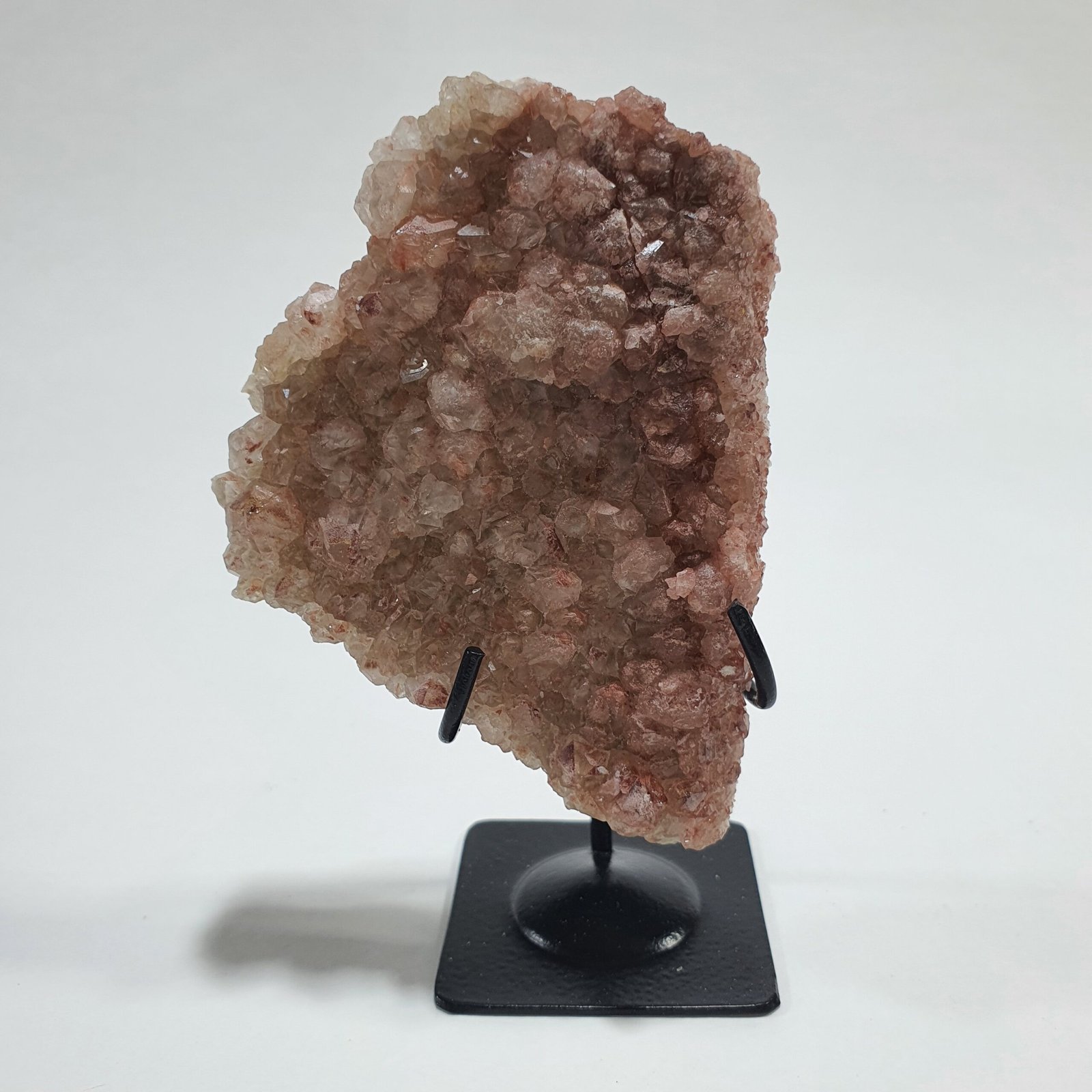 Lithium Cluster – Rough Quartz on Metal Stand (Support) features a quartz druse mounted on a metal stand, perfect for display in home decor, collections, or crafts. Each piece is unique, with distinct crystal arrangements and natural beauty.