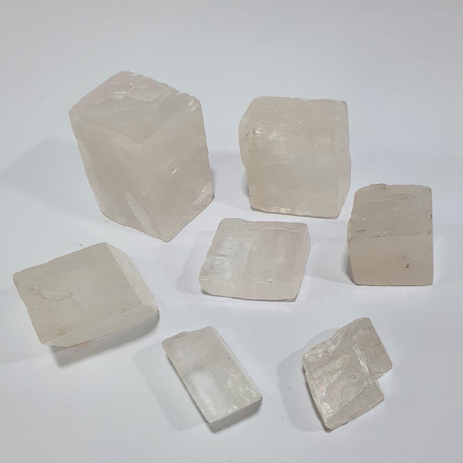 Each piece is natural and unique, with variations in transparency, shape, and minor inclusions that showcase its authenticity.