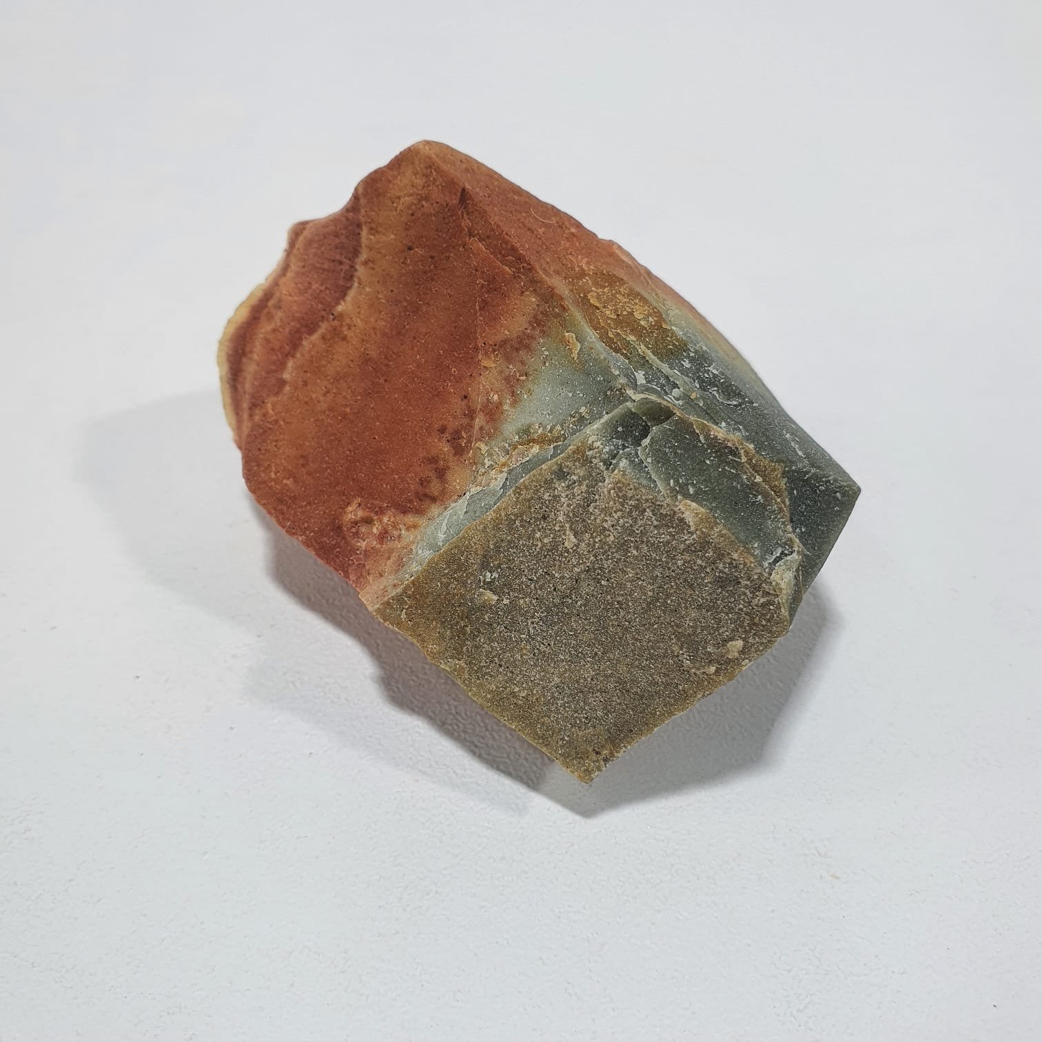 Polychrome Jasper is a form of microcrystalline quartz formed through sedimentary processes over millions of years. Its distinctive colors result from varying mineral impurities deposited during its formation.