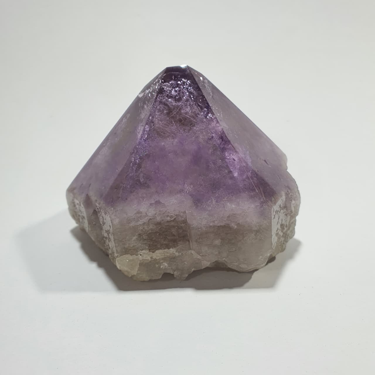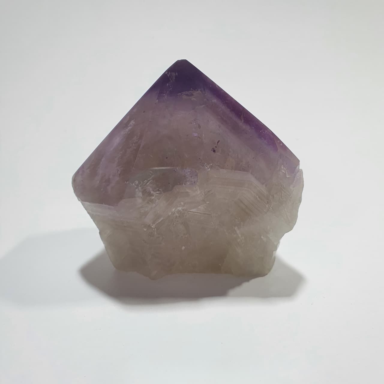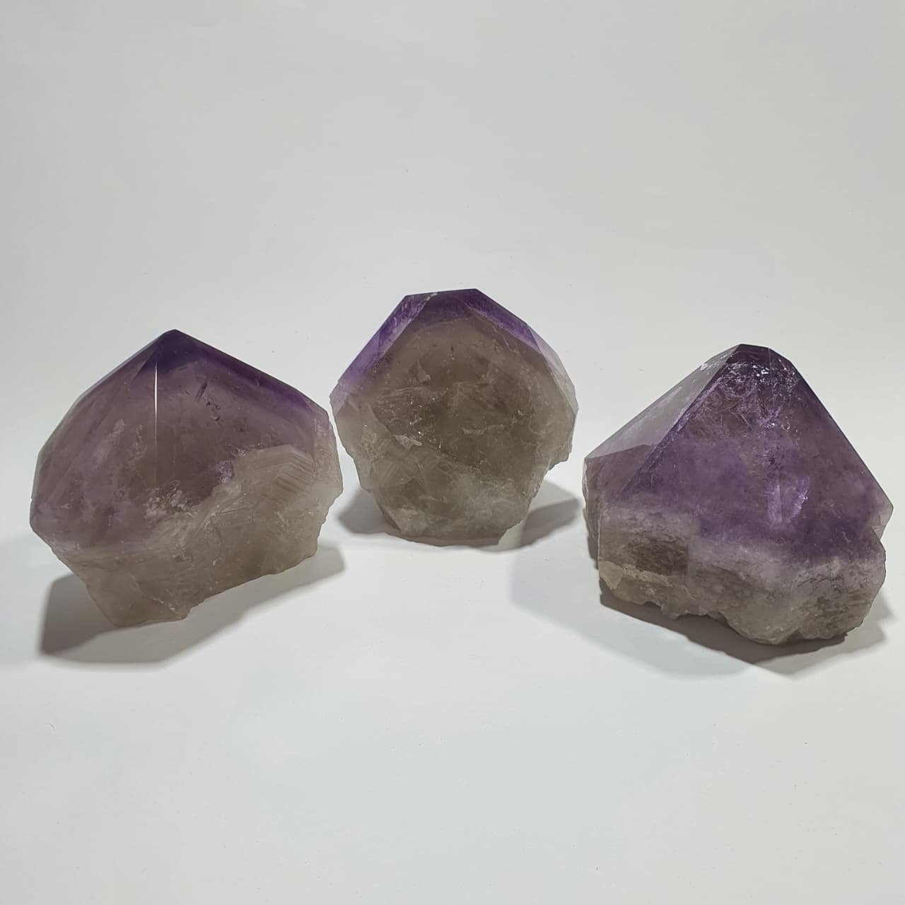 Amethyst is a purple variety of quartz (SiO₂), typically forming inside volcanic geodes and cavities where silica-rich fluids crystallize over millions of years. The violet hue results from iron traces within the crystal lattice combined with natural radiation exposure. Semi polished points undergo partial cutting and polishing on the crystal tip, while the base is left natural, creating a striking contrast between polished and raw surfaces.