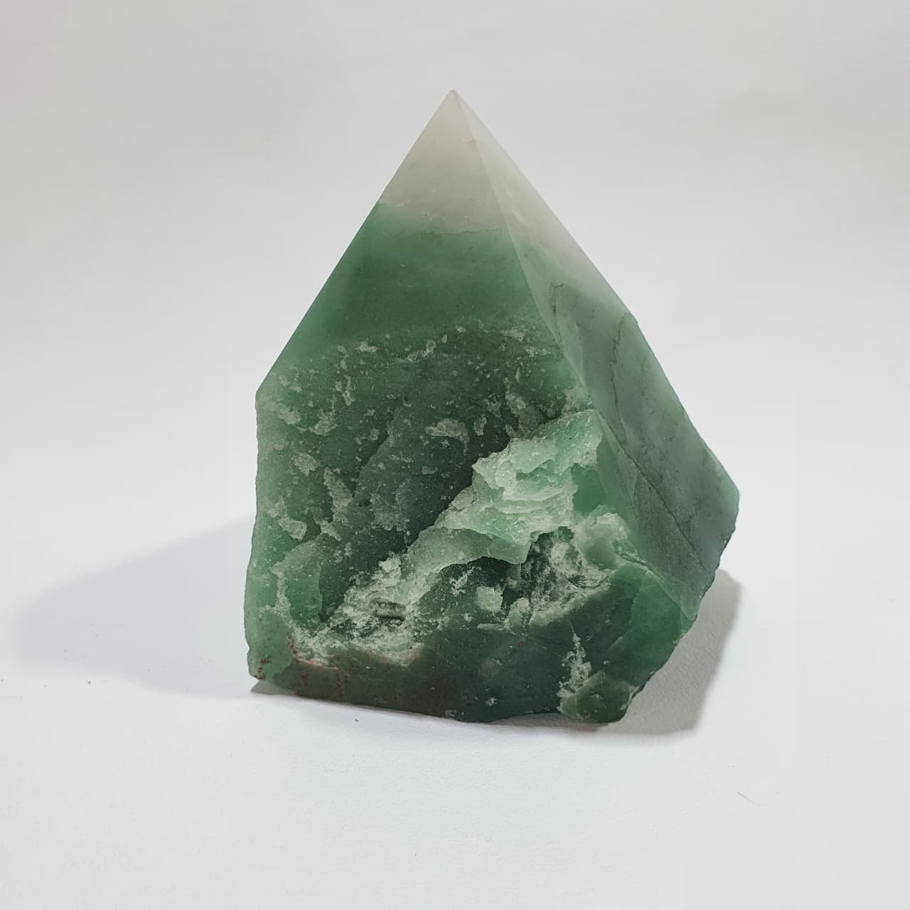 Green Quartz Bicolor is a macrocrystalline variety of quartz (SiO₂) distinguished by its dual coloration, typically caused by varying mineral inclusions or zoning during crystal growth. The semi polished process enhances the clarity and vibrancy of the polished tip while maintaining the authenticity of the natural base.