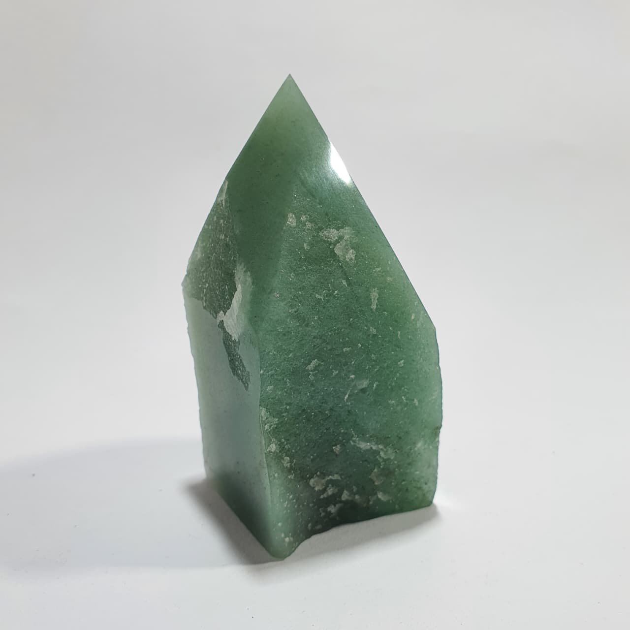 Green Quartz (SiO₂) forms in hydrothermal or igneous environments where silica-rich fluids crystallize, occasionally incorporating trace elements that produce green hues. Semi polished points are crafted by polishing the tip to highlight color and clarity, while leaving the base natural for a raw, authentic contrast.