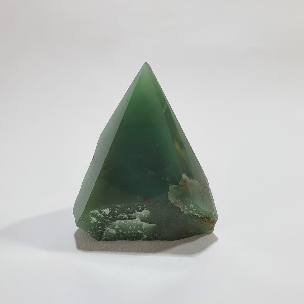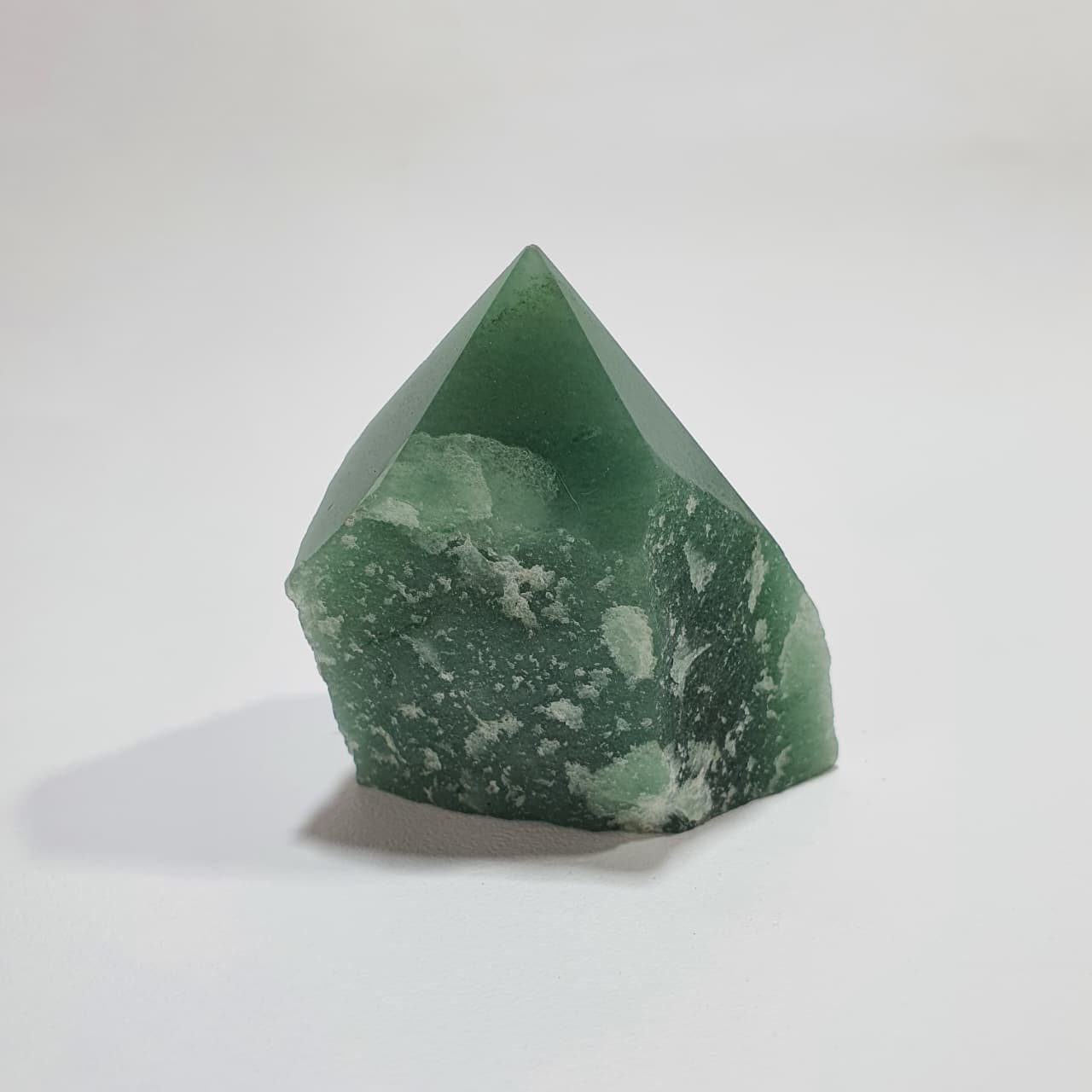 Green Quartz (SiO₂) typically forms in hydrothermal environments, where silica-rich fluids crystallize slowly and incorporate trace elements that produce its green coloration. Semi polished points are created by polishing the tip to reveal luster, transparency, and color, while the base is left in its natural, unworked form, providing a contrast between refined and raw surfaces.