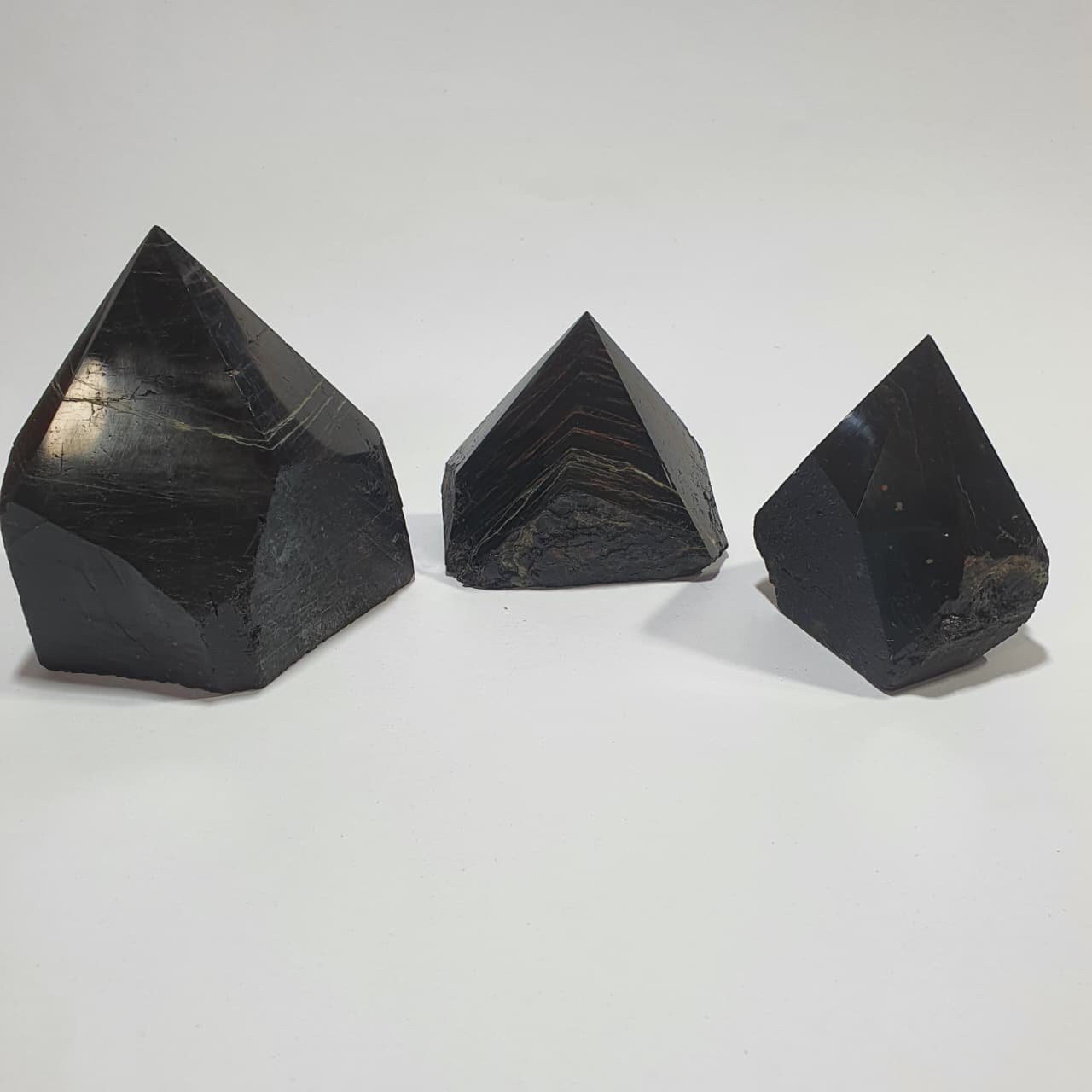 Obsidian with Hematite semi polished points sold by the kilogram. These unique pieces feature a polished tip that emphasizes the glossy black volcanic glass with metallic reddish inclusions of hematite, while the base is left in its natural form. Each piece is unique in color and shape, making it an excellent choice for collectors, interior decoration, and wholesale resale. Photos show the quality and approximate size of the pieces.