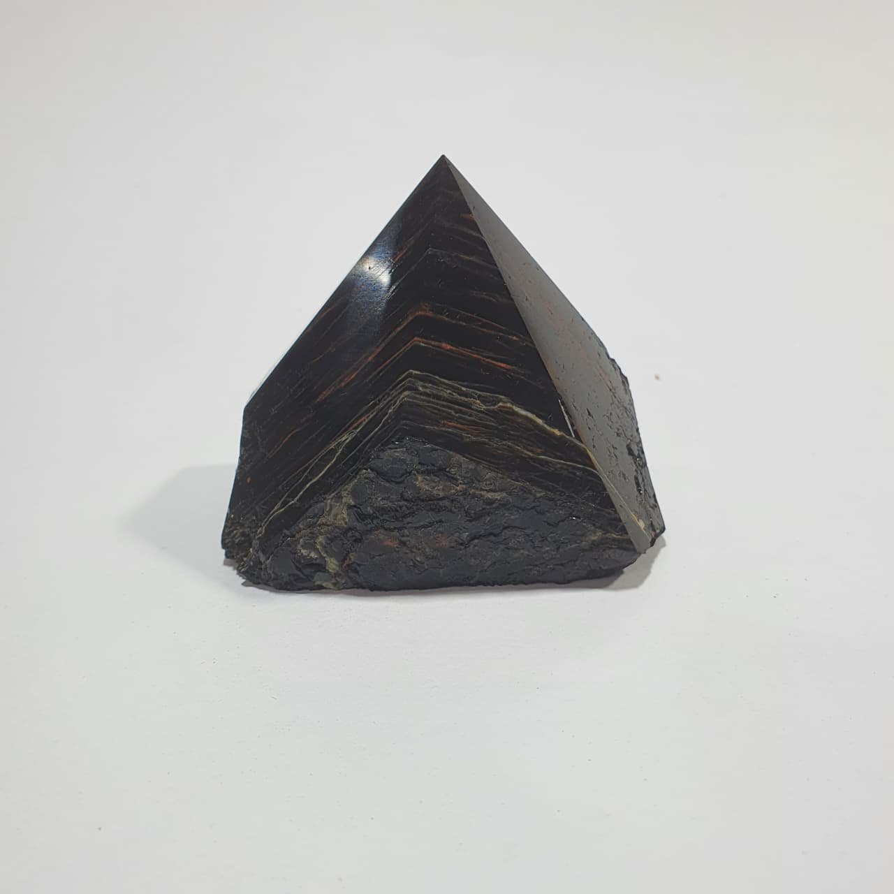 Obsidian is a natural volcanic glass formed when silica-rich lava cools rapidly, preventing crystal growth. Hematite (Fe₂O₃) occurs as inclusions within the obsidian, creating striking red to metallic specks or streaks. Semi polished points are partially worked: the tip is cut, ground, and polished to enhance luster and detail, while the base remains natural, preserving the raw volcanic texture.
