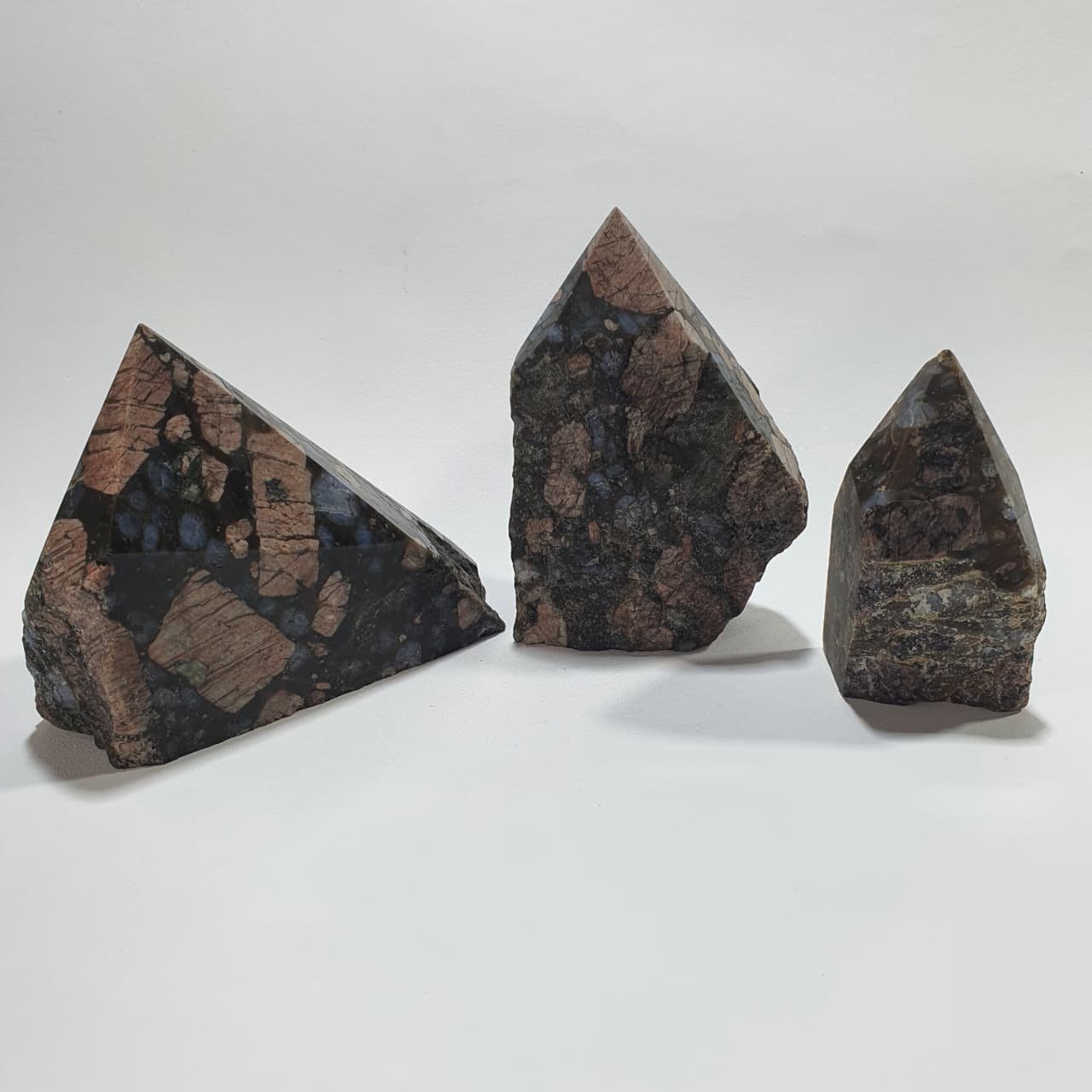 Rhyolite semi polished points sold by the kilogram. These pieces feature a polished tip that highlights the natural patterns and earthy tones of the stone, while the base remains raw to preserve its original formation. Each piece is unique in color and shape, making them ideal for collectors, decoration, and wholesale resale. Photos show the quality and approximate size of the pieces.