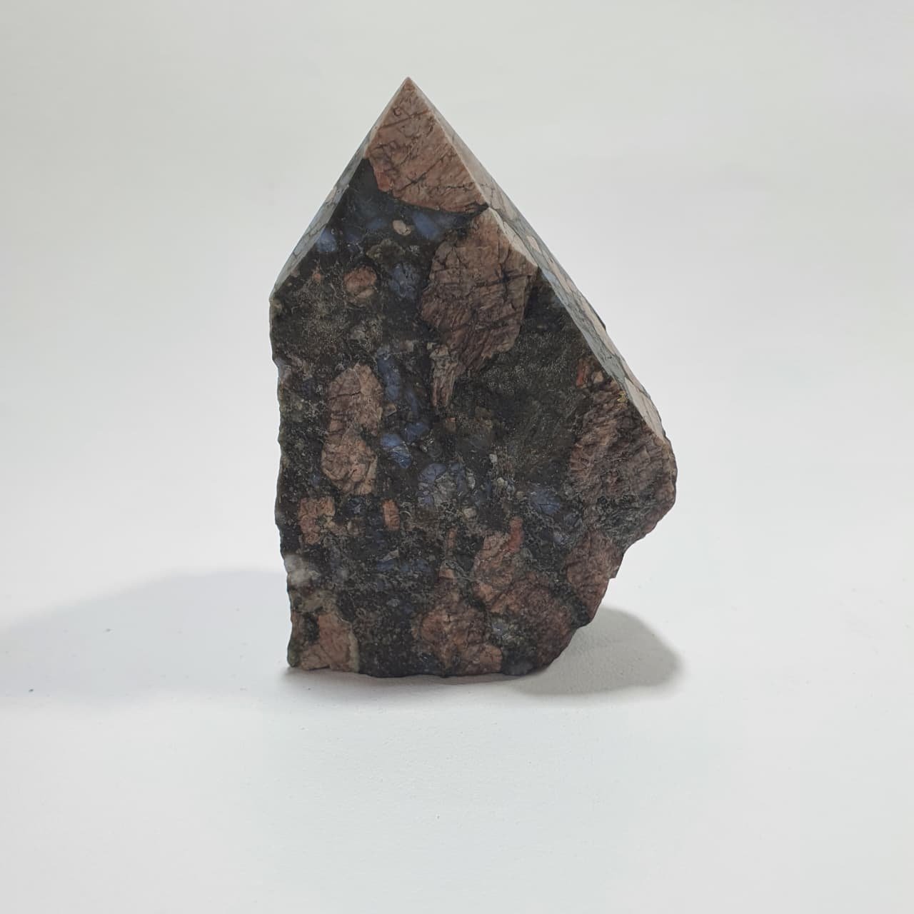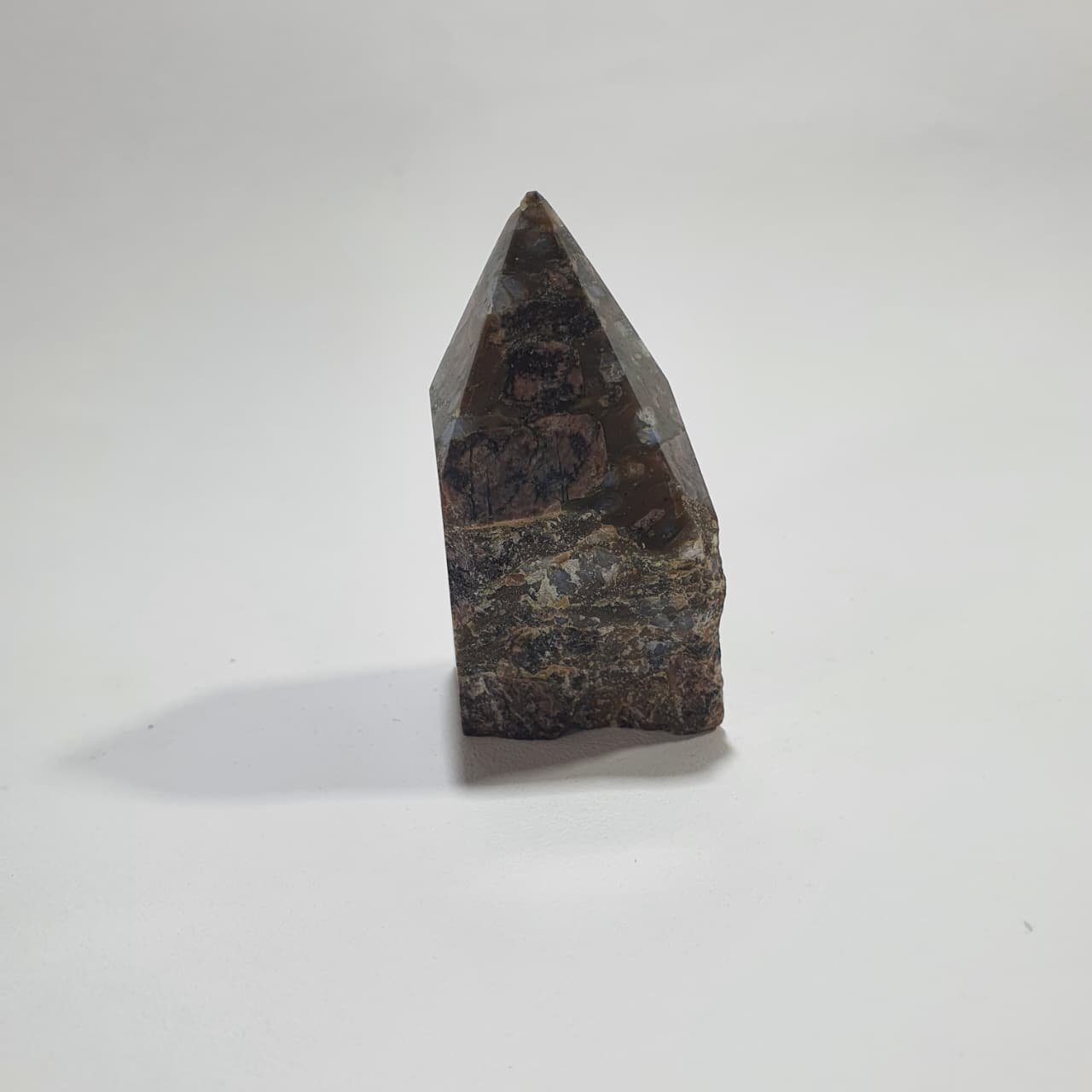 Rhyolite is a fine-grained volcanic igneous rock, rich in silica, formed from rapidly cooled lava. Its distinctive patterns and colors result from mineral inclusions and variations in cooling. Semi polished points are crafted by polishing the tip to enhance the stone’s natural texture and color contrast while leaving the base raw.